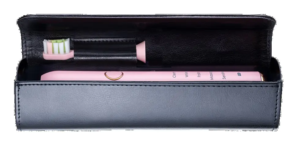 Eleganckie etui na szczoteczki soniczne Vitammy z imitacji skóry Miej swoją ulubioną szczoteczkę soniczną zawsze i wszędzie ze sobą! Z wygodnym i praktycznym etui możesz mieć swoje akcesoria do higieny jamy ustnej w każdej chwili pod ręką. Etui dedykowane jest dla szczoteczek sonicznych Vitammy: Aurum, Pearl+, Platinum, Symphony, Smils, Harmony, Splash, Dino Elegancki i dyskretny case doskonale sprawdzi się w damskiej torebce, w kosmetyczce na wyjazd czy szkolnym plecaku. Wygodne zapięcie zapewni utrzymanie szczoteczki w czystości. Wyprofilowane wnętrze stabilnie utrzymuje rękojeść oraz wymienną końcówkę.