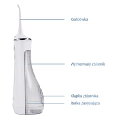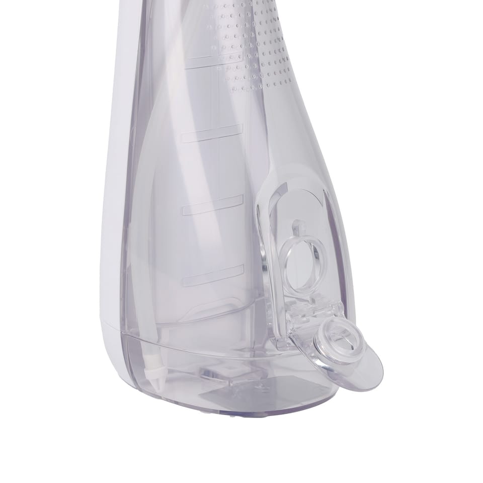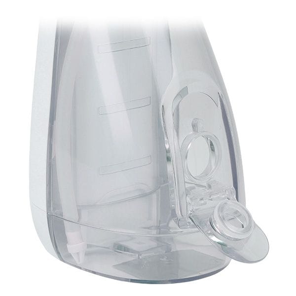 Przezroczysty zbiornik o pojemności 200 ml zapewnia odpowiednią ilość wody na pełny cykl irygacji. Można go wygodnie napełnić przez praktyczną klapkę lub zdemontować, aby łatwo wyczyścić i zachować higienę urządzenia.