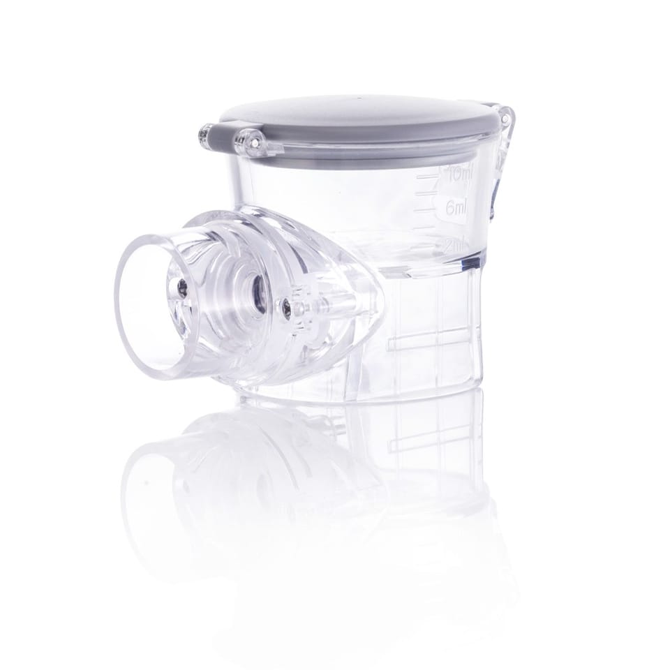 Głowica do inhalatora siateczkowego VITAMMY Mesh 1. Zachowaj wysoką jakość i higienę inhalacji. Głowica do inhalatora Vitammy Mesh 1 wykorzystuje technologię drgań membrany, zmieniając lek z cieczy w aerozol i gwarantując szybkie dostarczenie substancji do organizmu. Mikroskopijne kropelki są łatwo absorbowane z oddechem zarówno u dzieci jak i dorosłych, sięgając do całego zakresu układu oddechowego przy zachowaniu niskiej objętości martwej. Precyzyjna budowa głowicy Mesh 1 umożliwia skuteczną nebulizację wieloma lekami, w tym środkami wykrztuśnymi, lekami rozszerzającymi oskrzela i antybiotykami. Dlaczego warto wymieniać głowicę inhalatora? Cykliczna wymiana głowicy jest niezbędna przy częstym użytkowaniu nebulizatora, aby zachować wysoką jakość inhalacji. Dostępność wymiennej głowicy to wydłużenie żywotności inhalatora Vitammy Mesh 1 i zapewnienie poprawnego działania terapeutycznego. Precyzyjna technologicznie budowa głowicy Głowica VITAMMY Mesh 1 składa się ze zbiorniczka na leki i siatki rozpylającej. Siatka połączona jest z folią wibracyjną i okrągłym elementem piezoelektrycznym przekształcającym energię mechaniczną na drgania. Fala wytworzonych wibracji naciska na ciecz w zbiorniczku na leki, wytwarzając mgiełkę przez otwór na siatce rozpylającej. Dzięki przyjęciu formy aerozolu substancja szybciej dociera do organizmu, zwiększając efektywność leczenia. Wysokie parametry techniczne, oszczędzające lek Wielkość cząsteczek wytwarzanych podczas inhalacji określa parametr MMAD (µm), który im jest mniejszy, tym głębiej dociera do układu oddechowego. Używając głowicy Mesh 1 uzyskujesz wielkość cząsteczek 1 μm < MMAD < 4 μm, zapewniając optymalne parametry inhalacji. Efektywność podawania leku do dolnych dróg oddechowych określa frakcja respirabilna (FPF). Budowa głowicy Mesh 1 pozwala na uzyskanie wskaźnika < 60% FPF, sprzyjając głębszemu dotarciu substancji do dolnych dróg oddechowych, przy zachowaniu niskiej objętości martwej, czyli ilości niewykorzystanego leku, wynoszącej zaledwie ≤0,3 ml. Prosty w obsłudze Wygodna budowa głowicy sprawi, że przygotujesz się do inhalacji w kilka chwil: wystarczy odblokować pokrywkę, wlać lek do pojemnika na leki, zamknąć pokrywkę, następnie zamontować głowicę do korpusu urządzenia. Duża pojemność pojemnika pozwoli na wlanie aż do 10 ml płynu. Pusta komora na lek skutkuje automatycznym wyłączeniem się urządzenia, zwiększając wygodę i bezpieczeństwo użytkowania. Przenośny, wygodny i cichy Niewielka budowa urządzenia pozwoli na działanie w domu i w podróży. Cicha nebulizacja, wynikająca z wykorzystania technologii siateczkowej, to dodatkowy komfort przy inhalacji dzieci. Łatwy do wyczyszczenia i zdezynfekowania Dokładne czyszczenie wydłuża żywotność urządzenia oraz gwarantuje lepszą jakość inhalacji. Głowicę Mesh 1 łatwo odłączysz od urządzenia i zdezynfekujesz , używając 75% roztworu etanolu. Dezynfekcja pozwala na bezpieczne używanie urządzenia przez wielu użytkowników.