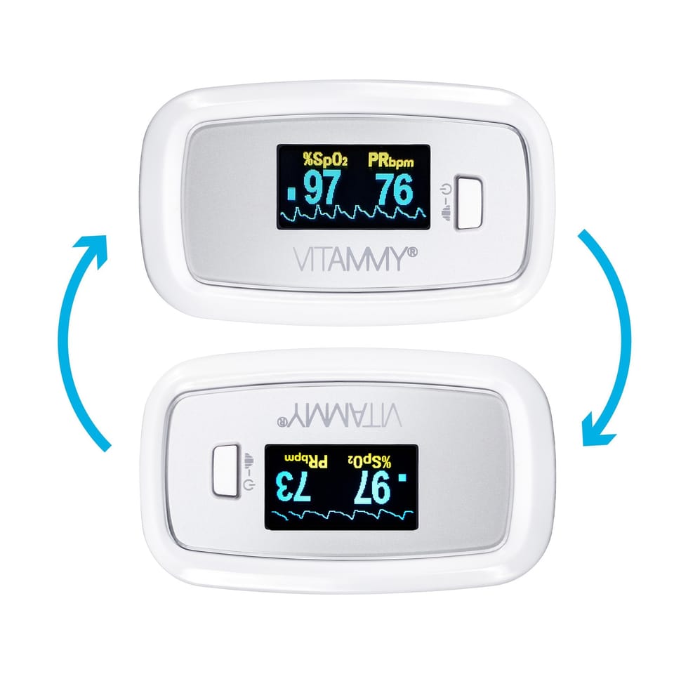 Pulsoksymetr VITAMMY sat+ wykorzystuje wyświetlacz w technologii OLED, dzięki czemu możliwe jest wyświetlanie wyraźnych informacjii przy użyciu 2 kolorów. Wyświetlacz OLED umożliwia wyświetlanie zarówno wykresu kolumnowego, jak i wykresu falowego tętna. Pulsoksymetr posiada funkcję automatycznego obracania ekranu.