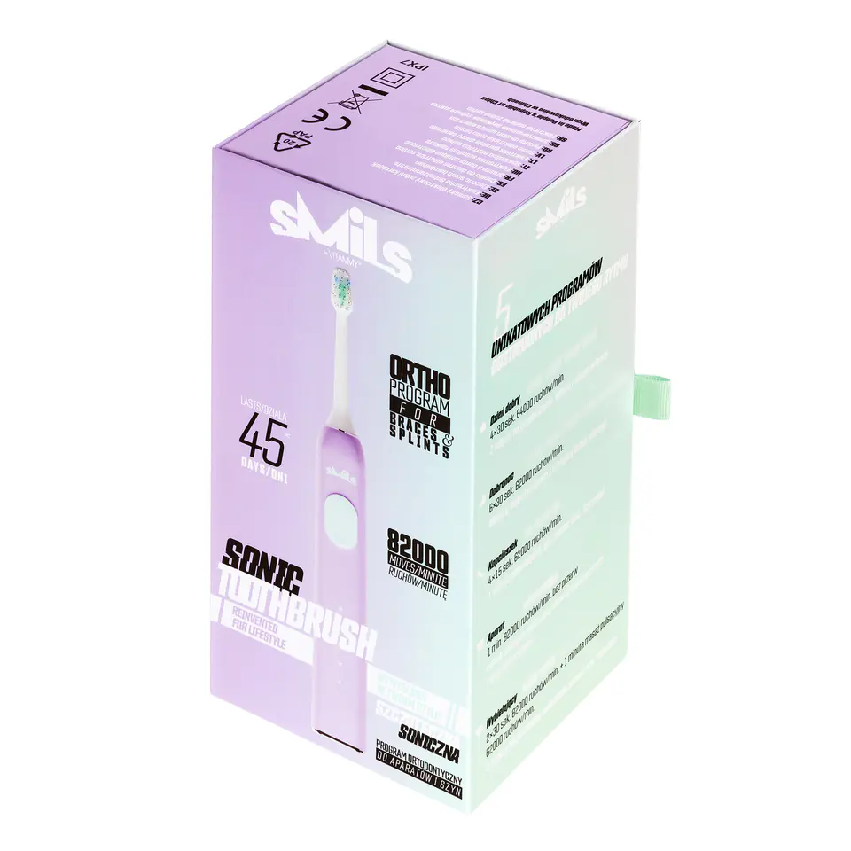 Szczoteczka soniczna VITAMMY Smils została zaprojektowana z myślą o młodych. Jej retro-futurystyczny wygląd, najwyższa jakość i aż 5 programów szczotkowania pomagają w dbaniu o zdrowe i białe zęby.
