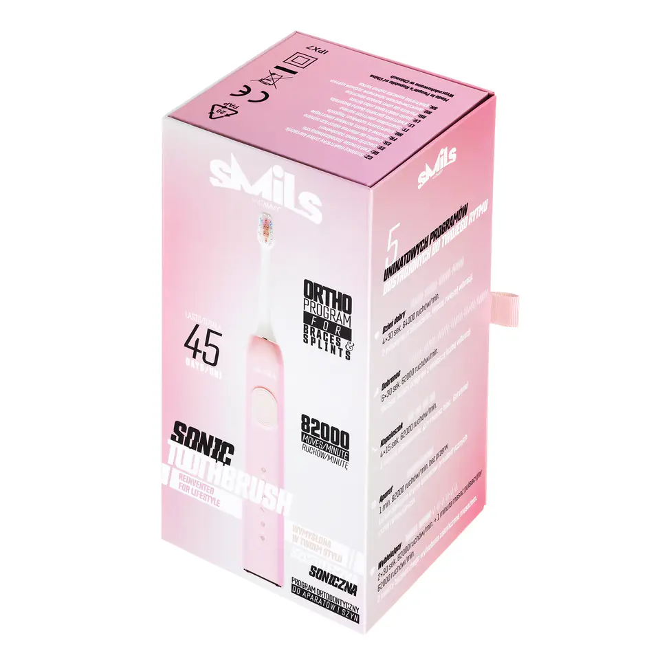 Szczoteczka soniczna VITAMMY Smils została zaprojektowana z myślą o młodych. Jej retro-futurystyczny wygląd, najwyższa jakość i aż 5 programów szczotkowania pomagają w dbaniu o zdrowe i białe zęby.