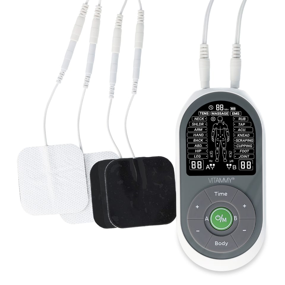 VITAMMY STIMULA Elektrostymulator mięśni, terapia TENS EMS i masaż 3 w 1, 4 elektrody