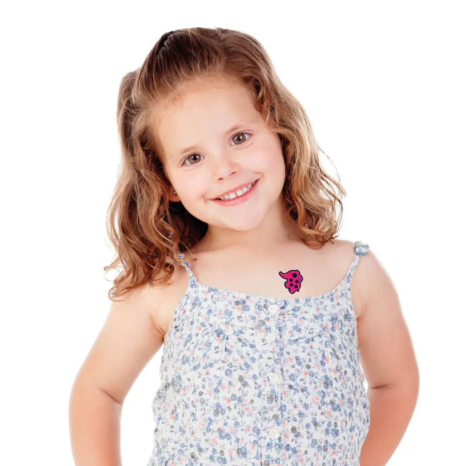 Naklejka THERMO STICKERS jest wskaźnikiem temperatury i może służyć do ciągłego kontrolowania gorączki z dokładnością 1°C, ponieważ umieszczona na ciele dziecka w sposób wizualny stale pokazuje poziom temperatury aż do 48h. Może być stosowana na czole, pod pachą czy na klatce piersiowej dziecka. Przyjazna i poręczna forma termometru Dzięki niewielkim rozmiarom i płaskiej strukturze możesz je ze sobą wszędzie zabierać. Kolorowe, przyjazne motywy dziecięce ułatwiają stosowanie u dzieci - sprawdzanie temperatury stanie się nie tylko mniej kłopotliwe dla rodzica czy opiekuna - stanie się wydarzeniem dla dziecka. Instrukcja użycia 1. Odklej warstwę zabezpieczającą i przyklej naklejkę THERMO STICKERS do czoła, pod pachą lub na klatce piersiowej dziecka. 2. Symbol N (NORMALNA) pojawiający się w dużym kółku oznacza normalną temperaturę ciała. W pozostałych przypadkach wynik liczbowy pojawi się w jednym z czterech małych kółek wskazujących ciepło ciała (uzyskanie 2 wyników w małych kółkach oznacza temperaturę pośrednią między tymi 2 wynikami). OSTRZEŻENIA! Naklejki THERMO STICKERS nie powinny być stosowane do kontroli poważnych problemów zdrowotnych, ponieważ są jedynie wskaźnikami temperatury. Zawsze używaj termometru do potwierdzania odczytów temperatury, szczególnie jeśli zauważysz jakieś nietypowe odczyty! Nie polegaj tylko na odczytach temperatury. Jeśli masz wątpliwości, zasięgnij porady lekarza! Nie używaj w przypadku stwierdzenia uszkodzenia naklejki! Ten produkt nie jest zabawką! Nie pozwól dziecku wkładać produktu do ust, żuć ani połykać. Należy zawsze stosować nadzór osoby dorosłej! Nie należy używać naklejek w miejscach zbyt gorących lub zbyt zimnych, ani podczas jedzenia lub ćwiczeń! W przypadku zaczerwienienia, swędzenia lub uczulenia w miejscu umieszczenia naklejki, należy przerwać stosowanie produktu i zasięgnąć porady lekarza! Nie należy utrzymywać na skórze dłużej niż 48 godzin! Przechowywanie Produkt należy przechowywać w chłodnym, suchym miejscu i unikać narażenia na ciepło lub bezpośrednie działanie promieni słonecznych. Właściwości Skład: Ciekły kryształ, PET, papier samoprzylepny - atestowane pod kątem zawartości szkodliwych substancji. Zakres pomiaru: 35-40°C Precyzja pomiaru: 1°C Czas pomiaru: 15 sekund
