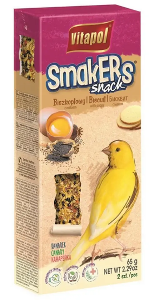 Smakers stanowi doskonałe uzupełnienie diety o pożywny biszkopt zawierający białka oraz wzbogacony wartościowymi nasionami maku, który reguluje pracę układu pokarmowego.