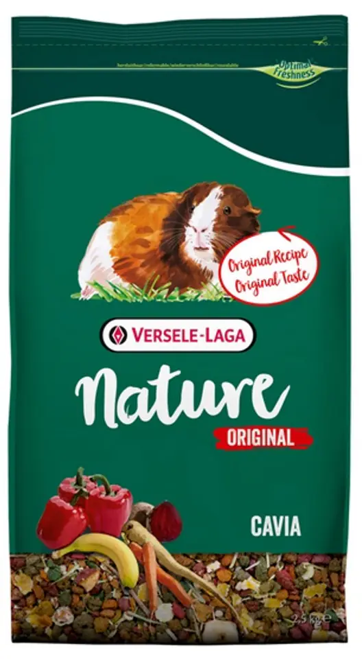 Nature Original Cavia to pełnowartościowa karma specjalnie dostosowana, aby zaspokoić całkowite zapotrzebowanie żywieniowe kawii domowych. Ta wysokiej jakości mieszanka smacznych składników zawiera wszelkie niezbędne składniki odżywcze, witaminy i minerały, których Twój pupil potrzebuje, aby prowadzić beztroskie życie i cieszyć się pełnią energii. Błonnik, zioła, warzywa i owoce zawarte w mieszance przyczyniają się do doskonałego trawienia, utrzymania dobrego stanu uzębienia, błyszczącej sierści i doskonałego zdrowia. Duża różnorodność składników gwarantuje dobry smak i doskonałe wchłanianie. Dzięki temu karma Nature Original to idealny wybór na codzienną porcję rozkoszy dla Twojej kawii domowej!