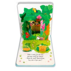 Zapraszamy do dżungli, gdzie czekają zwierzęta w swoich domkach, a w okienkach chowają się ukryte niespodzianki. Czym prędzej zaglądnij do książeczki – każda strona to niezwykła przygoda z ciekawymi okienkami do odkrycia. Oko nacieszą piękne, kolorowe rysunki przedstawiające dżunglę i jej mieszkańców. Można tu znaleźć tygrysa, małpki, leniwca, słonia i papugi oraz wiele ciekawych niespodzianek ukrytych w okienkach: żółwia, ryby, pawia, myszki, pająka, różne owady i wiele innych. W książeczce znajdują się również zabawne wierszyki, w których ostatnie słowo dziecko może odgadnąć, otwierając okienko i odkrywając, jakie w środku znajduje się zwierzę. Książeczka rozkładanka to doskonała zabawa dla każdego dziecka, z jej pomocą maluch nauczy się rozpoznawać i nazywać egzotyczne zwierzęta. Książeczka przeznaczona jest dla dzieci w wieku od 0 do 3 lat.