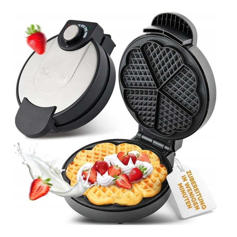 NAJWYŻSZEJ JAKOŚCIGOFROWNICA NA 2 GOFRYRENOMOWANEJ FIRMY BOMANNMODEL : WA 1365Niezbędna w każdej kuchni gofrownica sprawi, że każde śniadanie przeobrazi się w ucztę.Dzięki swojemu kształtowi gofry są idealne na wspólne posiłki z ukochanym.Dzięki nieprzywierającej powłoce zawsze będą idealnie wypieczone.Nowoczesny design pasujący do każdej kuchni.Są takie przysmaki, które lubi każdy z nas i z pewnością można do nich doliczyć gofry.Chrupiące słodkości jako idealny dodatek do śniadania, podwieczorek lub łakoć na specjalne okazje, zazwyczaj kojarzą nam się z dość skomplikowanym przygotowaniem.Gofry to bardzo specyficzna przekąska, stanowiąca połączenie naleśników i wafli.Chrupiące na zewnątrz, miękkie w środku, słodkie i aromatyczne mają zwolenników w każdej grupie wiekowej.Do ich przygotowania potrzebne jest jednak specjalne urządzenie.Wysokiej jakości mocna obudowa, stabilne gumowe nóżki oraz chowany przewód zapewniają bezpieczne użytkowanie produktu, nawet w obecności dzieci.Szybko skontrolujemy stopień zarumienienia łakoci.Pokrętło w centralnej części oraz lampka informująca o zasilaniu i gotowości do pracy czynią obsługę urządzenia naprawdę intuicyjną.Gofrownica posiada płyty grzewcze powleczone warstwą zapobiegającą przywieraniu. Szybkie podgrzewanie pozwala na przygotowanie w kilka minut aż 5 pysznych gofrów. Smacznego!Regulacja temperatury w postaci dużego pokrętła zapewnia intuicyjne użytkowanie i jest poręczna w obsłudze.Termostat regulujący temperaturę pieczenia pozwoli upiec je tak, jak lubisz najbardziej, mniej lub bardziej przyrumienione, z różnych rodzajów ciasta.Gofrownica zapewnia idealną temperaturę do przygotowania gofrów oraz jej równomierny rozkład.Koniec z goframi upieczonymi tylko od góry lub dołu.ŁATWOŚĆ CZYSZCZENIAPłyty grzejne pokryte są powłoką zapobiegającą przywieraniu i ułatwiającą czyszczenie, dodatkowo użyjesz mniej tłuszczu do przygotowywania ulubionych gofrów.Ciasto nie przykleja się do powierzchni płyty dzięki czemu możemy smażyć kilka serii gofrów bez konieczności czyszczenia urządzenia i przerywania pracy.Po skończonej pracy przetrzyj płytki papierowym ręcznikiem lub ściereczką i gotowe!DANE TECHNICZNE:Wkładka ze stali nierdzewnejDuże talerze (około 18 cm) pokryte powłoką nieprzywierającąIzolowany termicznie uchwytBezstopniowy termostat2 lampki kontrolne do zasilania i ogrzewania (pieczenie światła)Zabezpieczenie przed przegrzaniemZasilanie: 230 V, 50 HzJednostka mocy: 1000 W.Wymiary: 200 x 100 x 260 mm; 1,40 kgslimtex