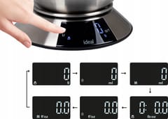 ✔️ 3 tryby ważenia: masa / objętość wody / objętość mleka