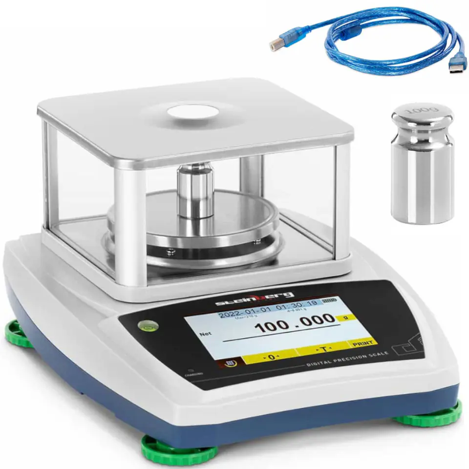 Waga marki Steinberg Systems sprawdzi się w laboratorium, w przemyśle lub przy badaniach. Dzięki wysokiej dokładności 0,001 g waga precyzyjnie rejestruje każde obciążenie do 200 g. Szklana osłona zapewnia nieskazitelne rezultaty. W zależności od potrzeb możesz wybrać różne jednostki pomiarów. Ekran dotykowy pozwala wybrać funkcje takie jak zapisywanie, liczenie, tarowanie, zerowanie, liczenie procentów i szybką zmianę jednostek. Interfejs RS232 pozwala podłączyć wagę do komputera lub drukarki. Duży wyświetlacz LCD z cyframi o wysokości 9 mm wyświetla wyniki pomiarów. Do automatycznej kalibracji wykorzystaj dołączony odważnik. Platforma ważąca ze stali nierdzewnej ma średnicę 98 mm. Duża szklana osłona przeciw podmuchowa chroni platformę przed czynnikami zewnętrznymi, które mogłyby zafałszować wynik. Otwierana jest po bokach i od góry. Dołączony zasilacz pozwala naładować akumulator. Zintegrowana poziomica i regulowane gumowe nóżki pozwalają dokładnie ustawić wagę.