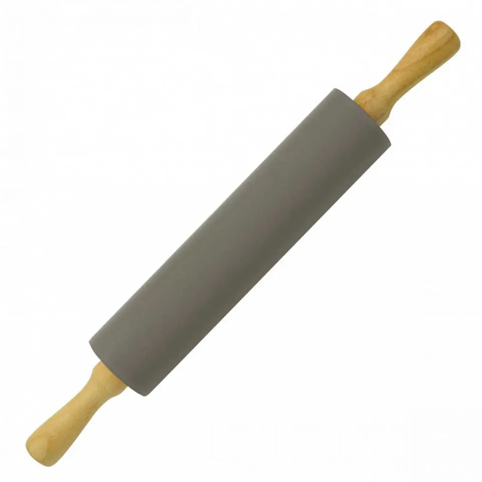 Wałek do ciasta z silikonową powierzchnią i drewnianymi rączkami