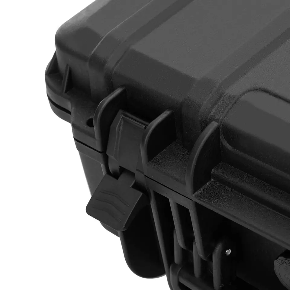 Walizka transportowa marki Steinberg Systems pozwala przechować aparaty fotograficzne, obiektywy, baterie lub laptopy i inny sprzęt elektroniczny. Etui jest odporne na kurz i wodę. Trwała żywica TSU-19 sprawia, że etui jest lekkie i przenośne. Walizka jest też odporna na wstrząsy. Niezniszczalna walizka transportowa na aparat idealnie nadaje się do wymagających sesji zdjęciowych. Solidna powłoka zewnętrzna niezawodnie chroni przed brudem i wilgocią dzięki klasie IP67. Za sprawą ergonomicznej rączki jest wygodna w przenoszeniu, nawet przy dużym obciążeniu. Wymiary wewnętrzne wynoszą 46.3 x 37.2 x 18.2 cm a pojemność 36.7 l. Pianka jest wstępnie uformowana i pozwala na wygodne uporządkowanie wszystkich przedmiotów.