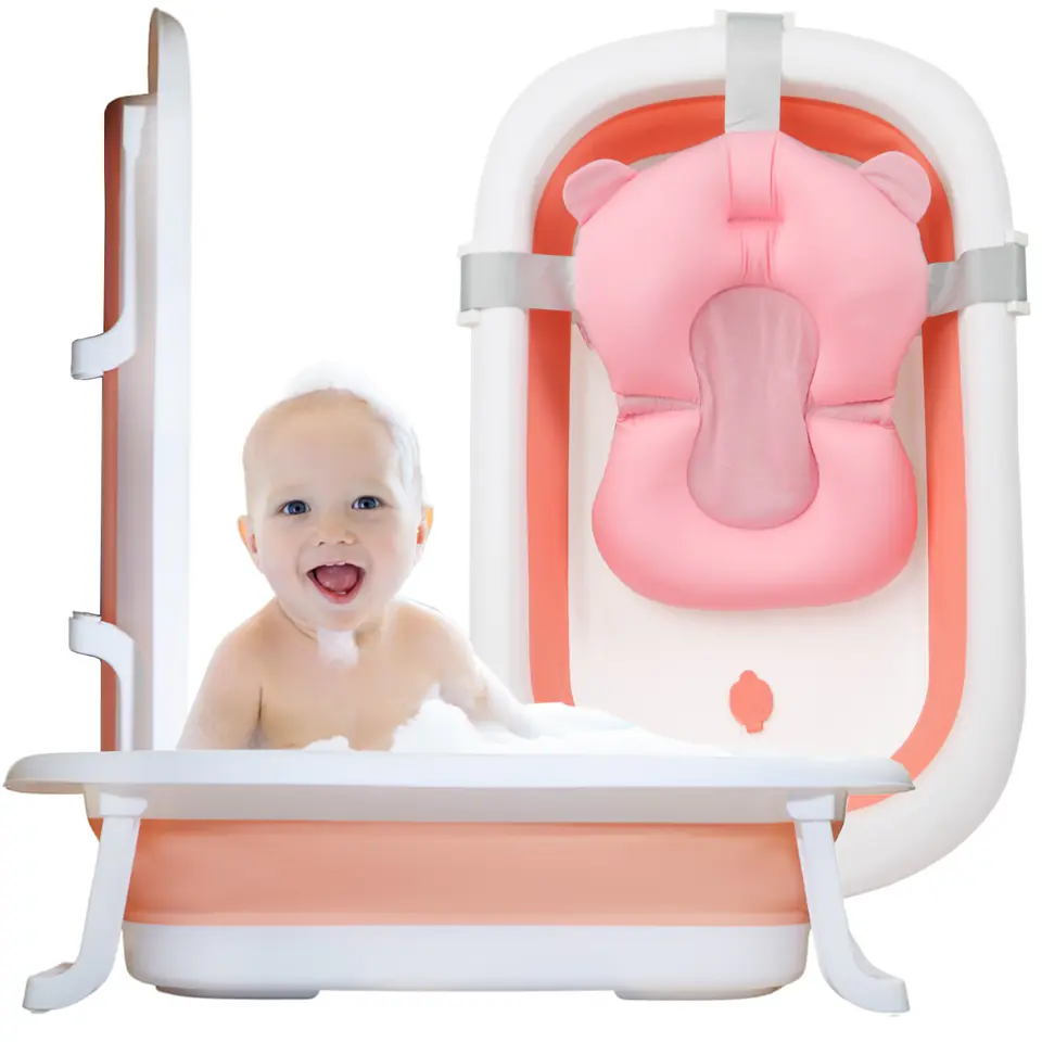 ⭐DUŻA WANIENKA DLA DZIECI SKŁADANA NICEKIDS SILIKONOWA RÓŻOWA Z PODUSZKĄ