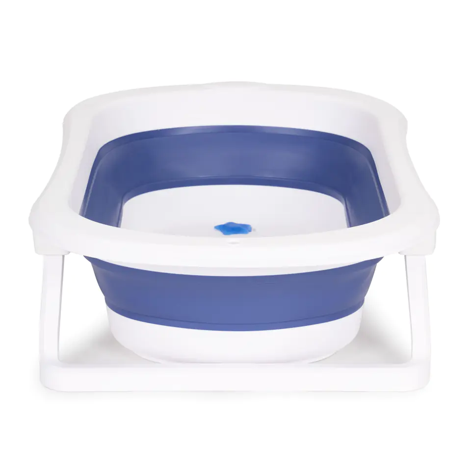 Wystarczy chwila, aby złożyć lub rozłożyć wanienkę. Po rozłożeniu nóg, należy wcisnąć dno i wanna jest już gotowa do użycia. Na jednym z boków znajduje się mały otwór umożliwiający odwieszenie wanienki.