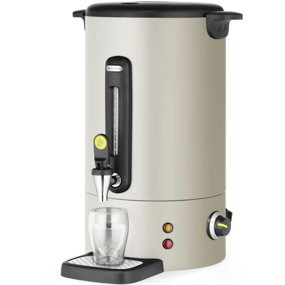Kod producenta: 211533Warnik marki HENDI UNIQ to doskonałe połączenie elegancji i funkcjonalności. Zaprojektowany został przez znanego projektanta Roberta Bronwassera. Wykonano go ze stali nierdzewnej, cechuje się niekapiącym kranem, szklanym wskaźnikiem poziomu wody, tacką ociekową mocowaną za pomocą magnesu, a także automatycznym trybem podtrzymywania ciepła. To wszystko sprawia, że jest to niezbędny dodatek do każdego nowoczesnego bufetu. Temperatura jest regulowana w zakresie 30-100deg;C. Pojemność warnika wynosi 16 l. Urządzenie zostało przystosowane pod szklanki o maksymalnej wysokości 100 mm. Lampka ostrzegawcza chroni przed przegrzaniem lub koniecznością odkamieniania. Warnik służy do gotowania wody lub podgrzewania wina, nie jest przystosowany do innych płynów, takich jak mleko czy gorąca czekolada.Cechy produktu: