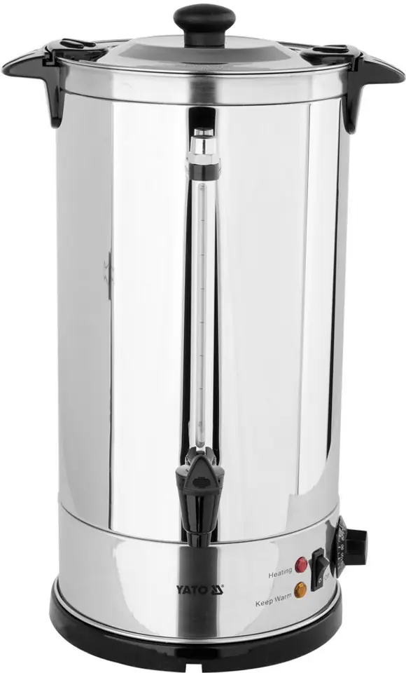 Na zewnątrz warnika znajduje się wskaźnik poziomu wody ze skalą w litrach. Po obu stronach warnika są mocne, nienagrzewające się uchwyty do przenoszenia. System TWIST LOCK szczelnie zamyka pokrywkę. Plastikowy kranik zapobiega kapaniu.