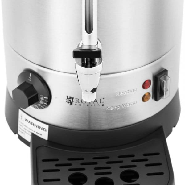 Kod producenta: 10012453Warnik marki Royal Catering pozwala podgrzewać oraz utrzymywać cieple napoje. Duża pojemność 9 l nadaje się do obsługi wielu osób w hotelach, stołówkach, na targach, festiwalach czy jarmarkach. Warnik wykonany został z wytrzymałej stali nierdzewnej, łatwej w pielęgnacji i nie wchodzącej w reakcje z żywnością. Duża moc 1500 W pozwala szybko podgrzać napoje do temperatury 30-110deg;C. Dzięki funkcji utrzymywania ciepła zawartość warnika jest zawsze gotowa do spożycia. Wskaźnik poziomu płynu pozwala kontrolować jego uzupełnianie. Dwuścienna konstrukcja za sprawą izolacji jest szczególnie energooszczędna. Kranik pozwala dokładnie odmierzać porcje napoju a tacka ociekowa chroni przed rozlaniem.Cechy produktu: