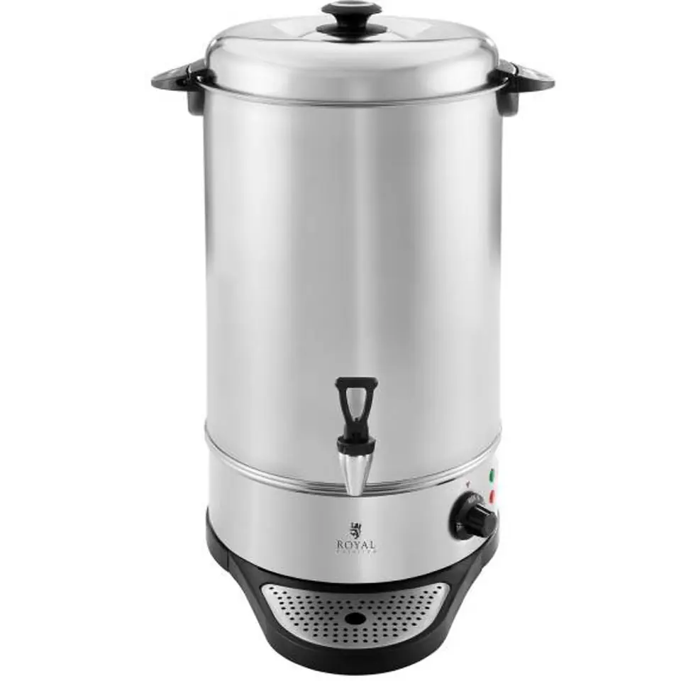 Warnik do wody RCWK 10A to uniwersalny sprzęt przeznaczony do podgrzewania wina, piwa oraz zaparzania kawy lub herbaty. Urządzenie od Royal Catering sprawdza się w hotelach, restauracjach, na festiwalach lub przyjęciach z większą liczbą gości. Model RCWK 10A ma pojemność wlewczą 10 litrów, a całkowitą 11,5 litra. Wykonano go z wysokiej jakości stali szlachetnej oraz tworzywa sztucznego. Gładka powierzchnia jest łatwa w oczyszczeniu, odporna na korozję i nadaje podgrzewaczowi elegancki, ponadczasowy wygląd. Pokrętło reguluje się w pięciostopniowej skali, co pozwala utrzymywać temperaturę wybranym zakresie od 55 do 100°C.