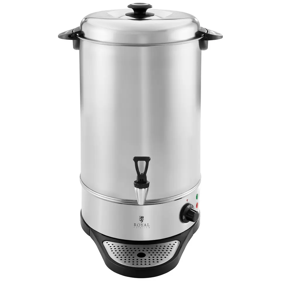 Warnik do wody RCWK 20A to uniwersalny sprzęt przeznaczony do podgrzewania wina, piwa oraz zaparzania kawy lub herbaty. Urządzenie Royal Catering sprawdza się w hotelach, restauracjach, na festiwalach lub przyjęciach z większą liczbą gości. Model RCWK 20A ma pojemność wlewczą 20 litrów, a całkowitą 21,4 litra. Warnik z kratką ociekową został wykonany z wysokiej jakości stali szlachetnej oraz tworzywa sztucznego.Warnik utrzymuje temperaturę w wybranym zakresie od 55 do 100°C.
