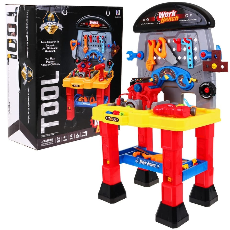 | Wymiary:-warsztat ok. 49 cm x 34,5 cm x 88 cm,- silnik po złożeniu ok. 27 cm x 17 cm x 16 cm- wkrętarka ok. 14 cm x 18 cm- narzędzia ok. 13 cm x 6 cmWymiary opakowaniaok. 52 cm x 43 cm x 19,5 cm. |