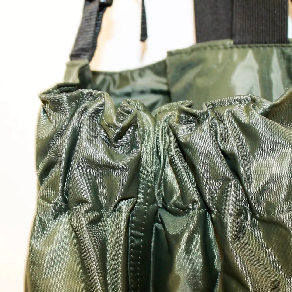 Lekkie i nie krępujące ruchów spodniobuty. Wędkarskie wodery wodochronne z wgrzanymi na stałe wysokiej jakości kaloszami posiadają regulowane szelki z elastycznej i szerokiej gumy. Wyposażone są w solidne buty z twardą, antypoślizgową podeszwą, przeznaczone do brodzenia po trudnym, kamienistym dnie. Znakomicie nadają się do czynnego wędkarstwa. Spodniobuty sprawdzone w różnych warunkach, wygodne i wytrzymałe, pozwalające przebywać cały dzień w wodzie bez obawy przecieknięcia.