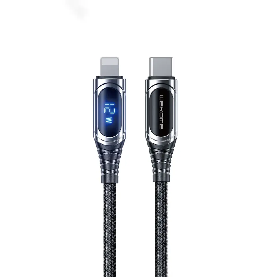 Kabel WEKOME WDC-167 Sakin Series do ładowania i transmisji danych o długości 100 cm, wyposażony w złącze USB-C na Lightning.Kabel jest bardzo elastyczny, wytrzymały i odporny na splątanie dzięki specjalnemu oplotowi z tkaniny TPE. Przewód umożliwia przesyłanie danych z prędkością 480 Mb/s.Kabel wyposażony jest w inteligentny wyświetlacz cyfrowy, który pozwala na monitorowanie mocy ładowania w czasie rzeczywistym. Produkt pakowany jest w ozdobne metalowe pudełko.Cechy produktu:· Kabel USB-C na Lightning· Materiał: Miedź cynowana + Elastyczny TPE· Maksymalna odporność na skręcanie· Natężenie: 6A (max)· Moc: 20W· Zintegrowana kontrola napięcia PD (Power Delivery)· Transfer danych: 480 Mbps· Cyfrowy wyświetlacz· Długość kabla: 1m