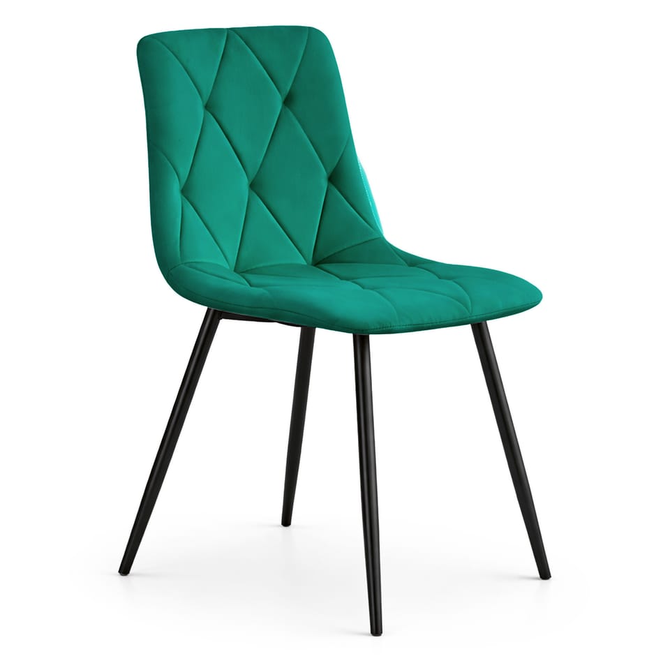 Welurowe krzesło tapicerowane pikowane Butelkowa Zieleń MILO Czarne nogi