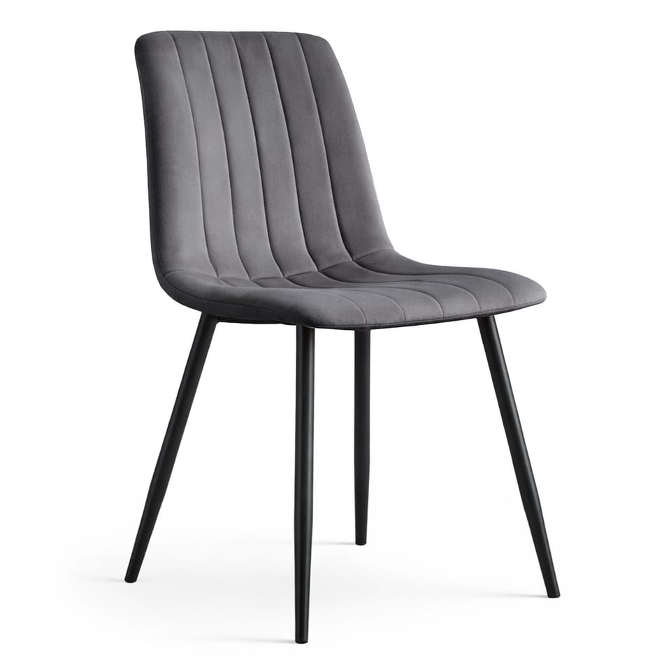 Welurowe krzesło tapicerowane pikowane Ciemny Grafit LIVO Czarne nogi