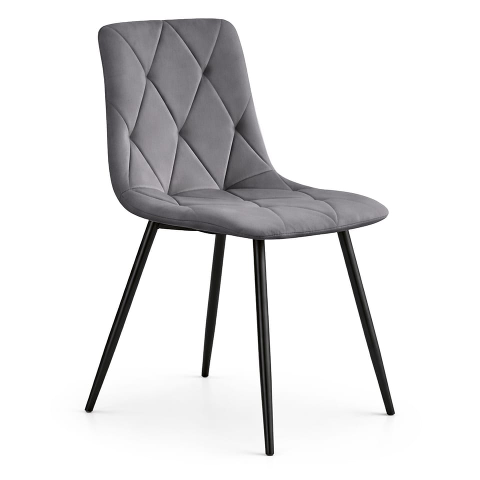 Welurowe krzesło tapicerowane pikowane Ciemny Grafit MILO Czarne nogi