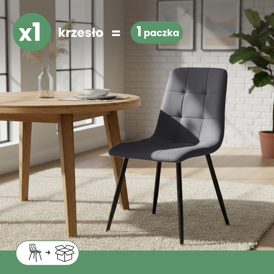 Welurowe krzesło tapicerowane pikowane Ciemny Grafit NERO Czarne nogi