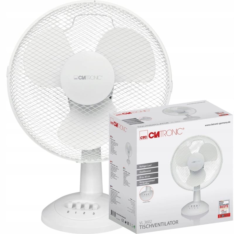NAJWYŻSZEJ JAKOŚCIWENTYLATOR WIATRAKBIURKOWY 30cmRENOMOWANEJ FIRMY CLATRONICMODEL: VL 3602Uniwersalny wentylator stołowy, dzięki klasycznemu wzornictwu doskonale sprawdzi się w każdym pomieszczeniu.W upalne dni, schłodzi powietrze w miejscu przy którym pracujesz lub odpoczywasz.Aby dopasować temperaturę możesz wybrać jedno z 2-stopniowego ustawienia natężania pracy wiatraka. Możesz też nakierować chłodne powietrze w konkretne miejsce ustawiając kąt nachylenia. Stabilny i solidny.Clatronic VL 3602 to uniwersalny wentylator stołowy który dzięki klasycznemu wzornictwu doskonale sprawdzi się w każdym pomieszczeniu. W upalne dni, schłodzi powietrze w miejscu przy którym pracujesz lub odpoczywasz.Średnica wiatraka to 30cm. Aby dopasować stopień chłodzenia możesz wybrać jedno z 3 ustawień natężania pracy wiatraka. Możesz również nakierować chłodne powietrze w konkretne miejsce ustawiając kąt nachylenia lub uruchomić funkcję oscylacji.Metalowa kratka chroni łopatki wiatraka przed uszkodzeniami i przypadkowym dostaniem się elementów, które mogących stanowić zagrożenie.Najważniejsze cechy wentylatora stołowego Clatronic VL 3601:Funkcja ruchu oscylującego z możliwością wyłączeniaRegulowany kąt nachyleniaMetalowa kratka zabezpieczającaStabilna pozycja dzięki stopkom antypoślizgowymWiatrak O ok. 30 cm2 poziomy natężenia nawiewu4 stopniowy przełącznik obrotów (0-1-2-3)Uchwyt do łatwego przenoszenia Produkt został odznaczony certyfikatem FOCUS - TEST DEUTSCHLANDS BESTECertyfikat TEST DEUTSCHLANDS BESTE został przyznany na podstawie badań przeprowadzonych przez „Germanys best household electronics”. W ramach testu porównane zostały produkty z ponad 20 000 marek z 274 segmentów rynkowych.Celem wyróżnienia „Focus” jest wskazywanie produktów cieszących się największym uznaniem konsumentów. Certyfikat przyznany jest na podstawie badań niemieckiego rynku i potwierdza wysoką jakość produktów a także świadczy o dużym zaufaniu konsumentów i renomie marki.slimtex