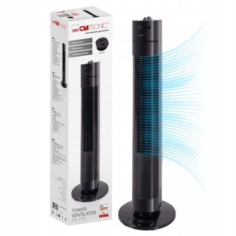 WENTYLATOR KOLUMNOWYNAJWYŻSZA JAKOŚĆRENOMOWANA FIRMARENOMOWANEJ FIRMY CLATRONICMODEL: TVL 3770 CZARNYWentylator Kolumnowy – Twoja Oaza ChłodzeniaSzukasz efektywnego rozwiązania, które pozwoli Ci cieszyć się świeżym powietrzem w gorące dni Nasz wentylator kolumnowy to doskonały wybór! Elegancki design i nowoczesna technologia sprawiają, że to urządzenie nie tylko zapewnia chłodzenie, ale także wpasowuje się w każde wnętrze.Dzięki 3 poziomom prędkości i różnorodnym ustawieniom, wentylator wieżowy TVL 3770 firmy Clatronic zapewnia maksymalny komfort w domu lub biurze. Ponadto urządzenie wyróżnia się płynnym biegiem, bezpiecznym stojakiem, praktycznym wgłębieniem na noszenie / uchwyt i 120-minutowym minutnikiem.Funkcja oscylacji obrotowej wentylatora w zakresie 75° zapewnia optymalną cyrkulację powietrza w pomieszczeniu i tworzy przyjemny klimat wewnątrzOszczędzający miejsce wentylator wieżowy idealnie pasuje do każdego pomieszczenia i zapewnia stylowe i skuteczne chłodzenie w upalne dniDzięki cichej pracy klimatyzator pozwala cieszyć się orzeźwiającym powiewem powietrza bez zwiększania poziomu hałasu, dzięki czemu możesz skupić się na pracy, odpoczynku lub śnieOchronna kratka i gumowe nóżki zapewniają stabilną i bezpieczną pracę chłodnicy powietrza, zapobiegając potencjalnym wypadkomDzięki 3 ustawieniom prędkości, 4-stopniowemu przełącznikowi i 120-minutowemu timerowi możesz dostosować chłodzenie pomieszczenia i dostosować wentylator do swoich potrzebOdkryj ostateczne doświadczenie świeżości i komfortu dzięki wentylatorowi wieżowemu Clatronic, który przekształci Twój dom w relaksującą oazę dobrego samopoczucia. Funkcja oscylacji obrotowej 75° zapewnia optymalną cyrkulację powietrza i tworzy przyjemny klimat w pomieszczeniu.Oszczędzający miejsce wentylator o wysokości 78 cm bezproblemowo wpasuje się w każde pomieszczenie, dodając stylowego akcentu do Twojego domu, a jednocześnie skutecznie chłodząc w upalne dni. Ciesz się cichą pracą, która zapewnia orzeźwiający powiew bez zwiększania poziomu hałasu - idealny do skupienia się na pracy, relaksie lub śnie.Bezpieczeństwo i łatwość obsługi są na pierwszym miejscu w przypadku tego wentylatora. Ochronna kratka i gumowane nóżki zapewniają stabilną i bezpieczną pracę, zapobiegając potencjalnym wypadkom. 3 ustawienia prędkości, 4-stopniowy przełącznik i 120-minutowy timer pozwalają dostosować wentylator do swoich potrzeb, dzięki czemu zawsze możesz cieszyć się optymalnym chłodzeniem.Praktyczny uchwyt do przenoszenia ułatwia przenoszenie i transport wentylatora z pokoju do pokoju, pozwalając cieszyć się orzeźwiającym powiewem w całym domu. Kup wentylator Clatronic już teraz i ciesz się orzeźwiającym powiewem, który zamieni Twój dom w oazę relaksu!NAJWAŻNIEJSZE CECHY:75° oscylacji (przełączana funkcja obrotu)Oszczędność miejscaCichy biegSkrzela ochronnePewna pozycja dzięki gumowym nóżkom3 poziomy prędkościPrzełączniki 4-poziomowe (0-1-2-3)120-minutowy timerPraktyczny, schowany uchwyt do przenoszeniaWysokość: 78 cm220–240 V, 50 Hz, 35 WJeśli szukasz efektywnego, a zarazem stylowego rozwiązania do swojego domu lub biura, wentylator kolumnowy będzie strzałem w dziesiątkę