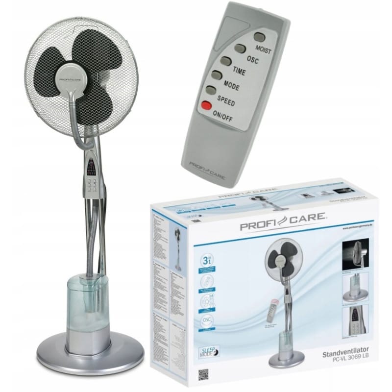 NAJWYŻSZEJ JAKOŚCI2w1WENTYLATOR WIATRAKZ BRYZĄI Z NAWILŻACZEMPOWIETRZA + PILOTRENOMOWANEJ FIRMY PROFICAREMODEL: PC-VL 3069 LBWentylator jest przeznaczony do efektywnego usuwania powietrza, a wraz z nim wilgoci, roztoczy czy nieprzyjemnego zapachu.Doskonale wspomaga wentylacje grawitacyjną w pomieszczeniach użyteczności publicznej oraz gospodarstwa domowego takich jak: łazienka, toaleta, kuchnia, sypialnia, pokój dzienny, przedpokój, biuro. Jego cicha praca i bezawaryjność gwarantuje duży komfort użytkowania.Elektroniczny wentylator stojący „2 w 1“, zawierający nawilżacz powietrza.Wentylacja w połączeniu z nawilżaniem powietrza w celu polepszenia i zoptymalizowania chłodzenia pomieszczenia.Możliwość osobnego stosowania nawilżacza powietrza również osobno, na przykład w przypadku suchego powietrza w pomieszczeniu w miesiącach zimowychObudowa została wykonana z wytrzymałej stali nierdzewnej INOX co zwiększa jego wytrzymałość i trwałość na lata. Dodatkowo ustawiony jest na antypoślizgowych podpórkach, które dodatkowo niwelują powstawanie drgań podczas pracy.Dodatkowo urządzenie posiada dwa programy dostosowujące rodzaj nadmuchu:Sleep - prędkość nadmuchu jest automatycznie zmniejszana po 30 minutach od uruchomienia funkcjiNature - programowalna zmiana prędkości nadmuchu w nieregularnych odstępach czasuRegulacja nawiewuStabilna konstrukcjaRegulacja kąta nachylenia Ważny powody, by wybrać nasz wentylator Szybki i łatwy montaż - zaledwie parę minut wystarczy, by wentylator był gotowy do pracyMocne tworzywo - duża wytrzymałość urządzeniaMocny silnik - duża moc i duża trwałość zapewniające satysfakcję z użytkowaniaBezpieczeństwo - siatka ochronna blokuje dostęp do obracających się śmigieł, zabezpieczając użytkownikówBardzo duża moc - urządzenie sprawdzi się nawet w największym upaleEnergooszczędność - bardzo małe zużycie prądu mimo dużej wydajnościStabilna konstrukcja- materiały i stabilność dają bezproblemową możliwość przenoszeniaPoziomy prędkości - dopasowanie do potrzeb poprzez intensywność chłodzeniaJeszcze szybszy efekt pracy urządzeniaWentylator został wyposażony w funkcję oscylacji, która daje możliwość automatycznego ruchu na boki urządzenia. Dzięki zastosowaniu tej funkcji powietrze zostanie równomiernie rozprowadzane po pomieszczeniu.TimerDzięki funkcji jesteśmy w stanie określić po jakim czasie od włączenia urządzenia zostanie ono wyłączone. Daje nam to możliwość zaplanowania pracy wentylatora.Nawilżanie powietrza - Większy komfort w pomieszczeniuWentylator został wyposażony w nawilżacz powietrza, dzięki któremu powietrze przechodzące przez wentylator jest dodatkowo nawilżane. Funkcja ta podnosi komfort przebywania w pomieszczeniu poprzez zwiększenie wilgotności, która w upalne dni jest na dość niskim poziomie. Dodatkowo zwiększa poczucie chłodu w pomieszczeniu.Wentylator stojący przeznaczony jest do stosowania wewnątrz budynków, zatem znajdzie zastosowanie w każdym mieszkaniu. Jest to urządzenie pozwalające na obniżenie odczuwalnej temperatury w pomieszczeniu – przyjemne podmuchy powietrza skutecznie Cię ochłodzą, tworząc sprzyjające warunki do przebywania we wnętrzach.Produkt najczęściej stosowany jest w okresie letnim podczas doskwierających upałów– doskonale sprawdzi się zatem we wszelkiego rodzaju biurach i restauracjach, gdzie stworzy atmosferę sprzyjającą wykonywaniu zaplanowanych prac. Wentylator utrzymany jest w czarnym kolorze, dzięki czemu z łatwością dopasuje się do wystroju Twojego otoczenia.To idealne rozwiązanie na nadchodzące upały i gorące dni - sprawdzi się on w pomieszczeniach o dużej powierzchni wymagających solidnego wiatraka o wysokiej mocy.Wysokoobrotowy wentylator powietrza w odróżnieniu od zwykłych wentylatorów wywołuje rzeczywistą cyrkulację powietrza w pomieszczeniu, dzięki czemu następuje jego ciągły przepływ, co w rezultacie obniża temperaturę w całym pomieszczeniu.Idealnie nadaje się do:magazynusklepuwarsztatuzakładu pracykuchnirestauracjidomuPARAMETRY TECZNICZNE: 1WENTYLATOR:średnica ok. 40 cmoscylujący (możliwość odłączenia)stabilna pracakąt nachylenia przestawnymetalowa kratka ochronnaz pilotem do zdalnego sterowaniaelektroniczny regulator czasowy: 0,5 h7,5 h (w 30-minutowych krokach), stabilna pozycja stojąca3 prędkości wentylacji (Mid, High, Low)2 zaprogramowane funkcje wentylacji: Nature: elektronicznie zaprogramowana zmiana prędkości wentylacji (High, Mid, Low) w regularnych odstępach czasu Sleep: Program stand-by, po 30 minutach automatyczne zmniejszenie prędkości wentylacjilampka kontrolna LEDWymiary wentylatora:Wymiary (ok. szer. x wys. x gł.) i wagaUrządzenie: 435 x 1250 x 400 mm; 6.81 kgOpakowanie: 575 x 460 x 240 mm; 7.05 kg2NAWILŻACZ POWIETRZA:do wytwarzania przyjemnego, zdrowego mikroklimatuwytwarzanie mgiełki technologią ultradźwiękowąduży, przezroczysty zbiornik wodny o pojemności 3 litrówpraca ciągła do 15 godzinproste napełnianie dzięki zdejmowanemu zbiornikowi wodnemuprzystosowany do pomieszczeń o powierzchni do 60–70 m2wydajność nawilżania ok. 0,2/h-0,3l/hregulowane wytwarzanie mgiełki wodnej w 3 stopniach (wysokim, średnim, niskim)otwór kierujący przy kratce metalowej w celu optymalnego wytwarzania zawirowania mgiełkiistnieje możliwość korzystania tylko z nawilżaczaslimtex
