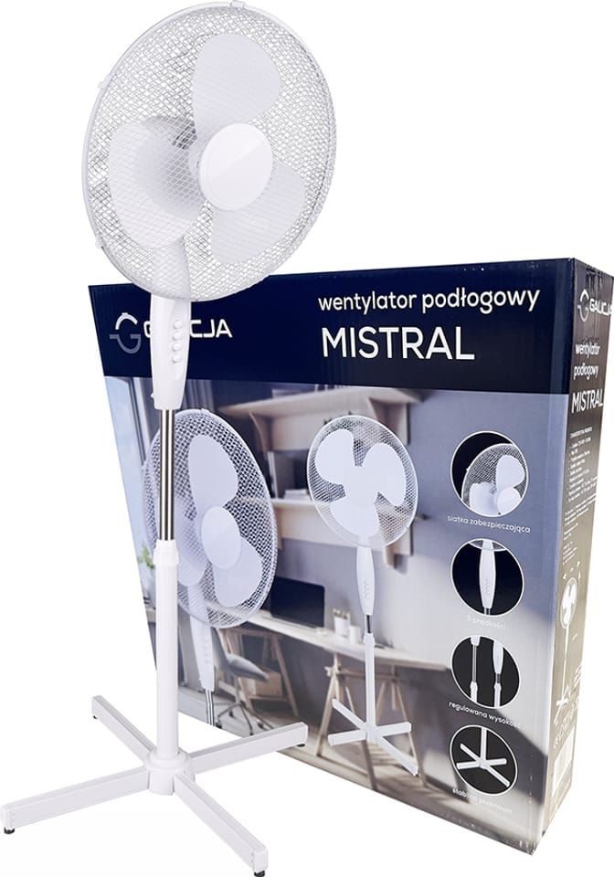 Wentylator podłogowy Mistral z oscylacją i regulacja nadmuchu