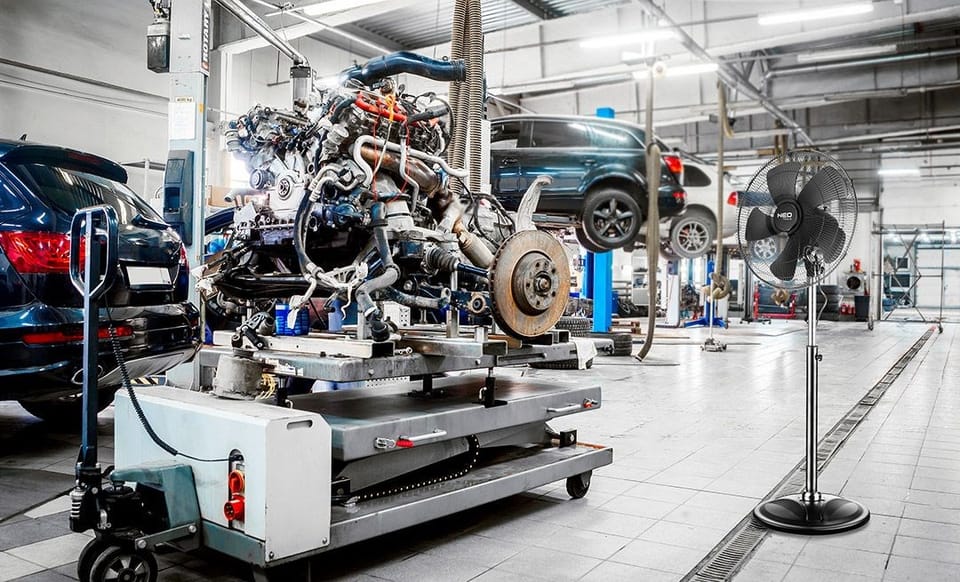 Wentylator podłogowy warsztatowy 100W EXTRA POWER, średnica wiatraka 45 cm, 3 prędkości nawiewu, oscylacja: lewo-prawo, do ciężkich warunków, do użytku w warsztacie, silnik wykonany w 100% z miedzi.