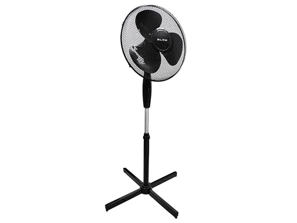 Mocny i cichy wentylator marki BLOW to nowoczesne urządzenie dzięki któremu możemy zapomnieć o doskwierającym upale. Wiatrak posiada aż 3 stopnie pracy oraz funkcje oscylacji, dzięki której mamy pewność, że powietrze będzie cyrkulować po całym pomieszczeniu. Zastosowanie gęstej kratownicy dba o bezpieczeństwo naszych pociech, dzięki niej nie włożą placów ani innych przedmiotów które mogłyby zagrażać ich zdrowiu. Budowa wentylatora wychodzi naprzeciw potrzebom użytkownika i pozwala na dostosowanie nie tyko wysokości na jakiej będzie się znajdował ale również na regulację kąta nachylenia wiatraka.