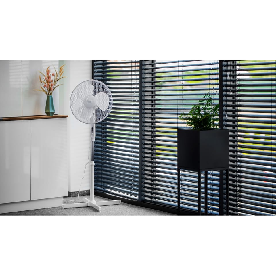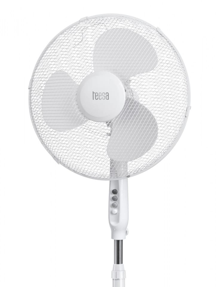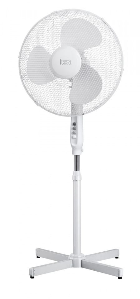 Wentylator stojący TEESA POWIAŁO CHŁODEM! A to wszystko dzięki wentylatorowi stojącemu Teesa! Wybór jednego z trzech trybów prędkości gwarantuje, że dostosujesz temperaturę do swoich potrzeb. Duża średnica śmigieł, napędzanych silnikiem o mocy nominalnej 45 W, w połączeniu z automatyczną oscylacją 90° sprawiają, że wentylator z łatwością schłodzi większe pomieszczenie.