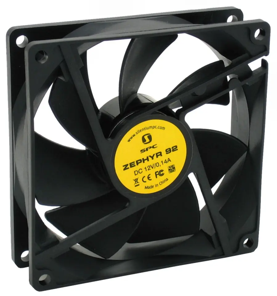 Wentylator przeznaczony do obudów komputerowych, Zephyr 92 marki SilentiumPC, to przede wszystkim wysoka jakość wykonania, cicha praca oraz korzystna cena. Wentylator ten pracuje z prędkością 1300 obrotów na minutę, generując hałas na poziomie 13.9 dBA. Przepływ powietrza jaki generują łopatki wentylatora jest na poziomie 33.77 CFM. Klasycznie czarny kolor wentylatora doskonale współgra z większością obudów, a opleciony kabel zasilający pomaga w utrzymaniu porządku w kablach oraz łatwo się układa. W komplecie znajdują się także śruby montażowe i odpowiedzialne za redukcję drgań silikonowe podkładki pod śruby. Wysoką kulturę pracy wentylatory Zephyr zawdzięczają nowoczesnemu łożysku FDB (Fluid Dynamic Bearing). Dodatkowym atutem tego rozwiązania jest przedłużona, niż ma to miejsce w ślizgowych łożyskach, żywotność wynosząca nawet do 50000 h.