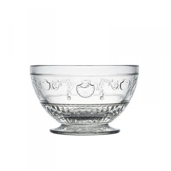 Miseczka z bogato zdobionej kolekcji Versailles, wykonana z prasowanego szkła, ozdobiona reliefowymi motywami barokowymi kwiatów, pnącej się roślinności i przegrzebków. Idealnie nadaje się do serwowania owoców, deserów i przystawek.Cena dotyczy 1 szt. Zawartość w opakowaniu: 6 szt.Pojemność: 270 mlWymiary: h 6,6 cm, Ø 10,5 cmKolor: transparentny Materiał: szkło Mycie w zmywarce: takKolekcja: VersaillesMarka: La Rochere...