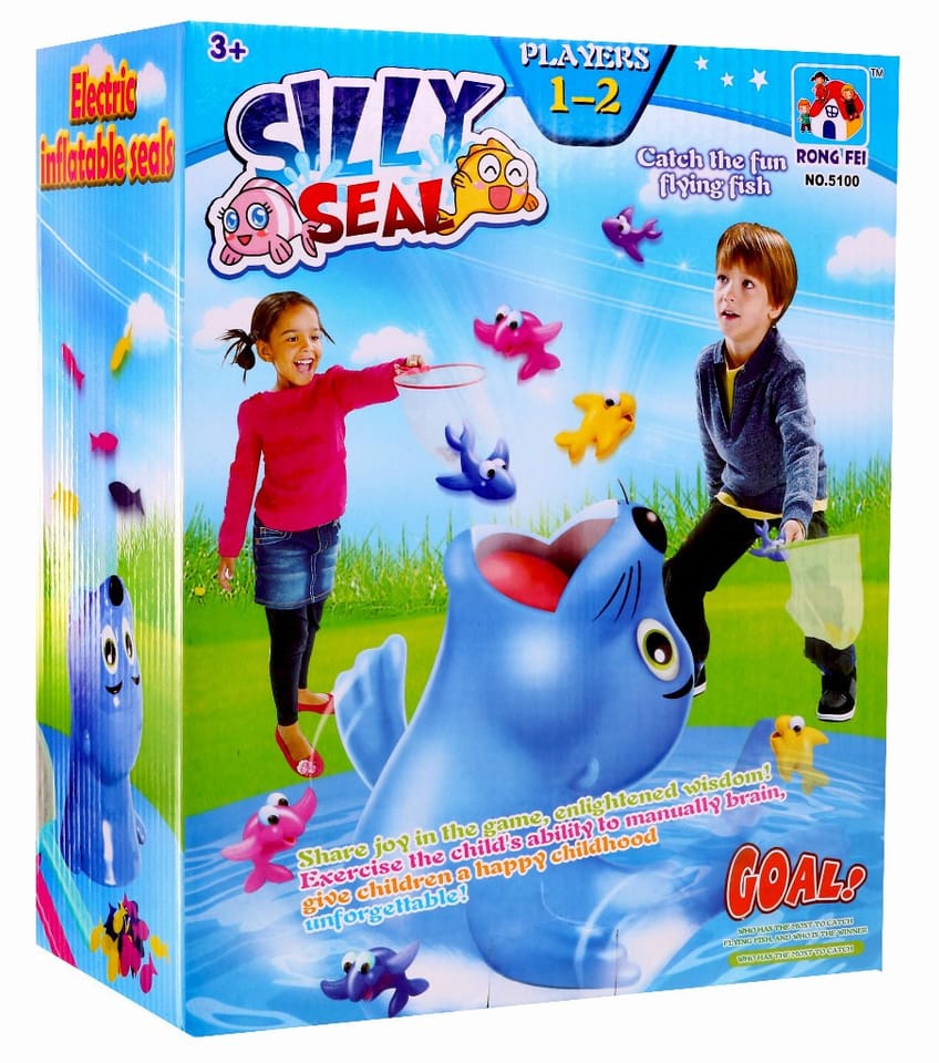 Gra polega na złapaniu jak najwięcej latających rybek wylatujących z pyszczka śmiesznej foczki. Wygrywa ten gracz, który złapie ich najwięcej. W grze liczy się spryt, spostrzegawczość oraz zręczność. Gra przeznaczona jest dla 1-2 graczy. Zabawka zasilana jest 4 bateriami typu AA 4 x 1,5V (brak w zestawie). | |