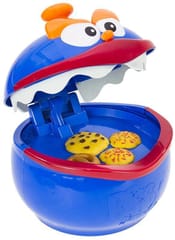 Ustawiamy Ciasteczkowego Potwora pomiędzy graczami. Na czubku jego głowy montujemy gałkę. Za pomocą uchwytu rozchylamy mu paszczę i przesuwamy przycisk blokady do góry - szczęka potwora zostanie unieruchomiona. W tym momencie możemy bezpiecznie wrzucić wszystkie ciasteczka. Zwalniamy blokadę i rozpoczynamy grę. Kręcimy strzałką, strzałka wskaże nem jakiego rodzaju ciasteczko mamy wyciągnąć z paszczy potwora. Podczas wykradania ciasteczka, dokładnie zaplanujcie każdy ruch, jedno niewłaściwe posunięcie i wasze paluszki zostaną lekko przytrzaśnięte. Grać możemy na zmiany. Gra się kończy w momencie gdy jeden z graczy zostanie przytrzaśnięty przez Ciasteczkowego Potwora. Rozgrywkę wygrywa ten kto zgromadził większą ilość ciasteczek. Zabawka posiada wykonane z miękkiej pianki zęby. Przy zatrzaśnięciu nie wyrządzi dziecku krzywdy. Zaproś kolegów i rodzinkę do fantastycznej zabawy. Zmierzcie się z Ciasteczkowym Potworem, zobaczymy kto jest bardziej sprytny.
