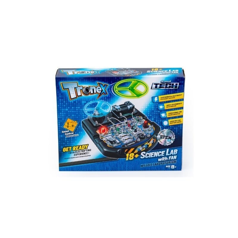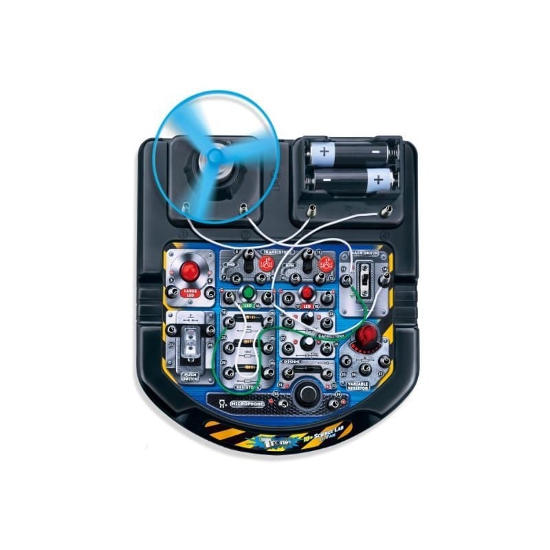 Wesołe Laboratorium Łącz obwody i odkryj fascynujący świat elektryzujących doświadczeń! To duże, elektroniczne laboratorium daje możliwość wypróbowania różnych eksperymentów, np. latającego wentylatora. Wypróbuj różne kolejności łączenia kabelków, opisane w instrukcji obsługi, i sprawdź jaką reakcję urządzenia wywołasz. Cechy produktu: - zabawa polega na łączeniu kabelków w obwody i testowaniu jak różne połączenia oddziałują na cały układ; - różne „doświadczenia" , m. in. latający wentylator; Baterie: 2 x AA (niezawarte w zestawie) Wiek: 8+