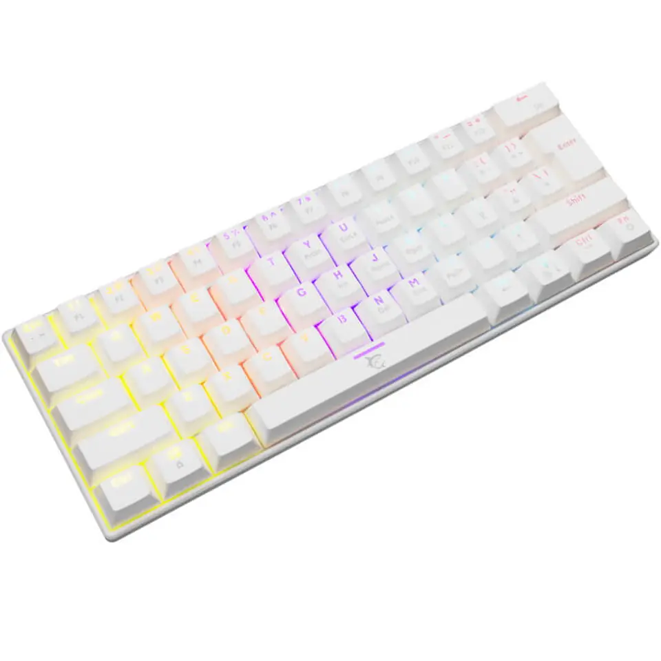 Przewodowa klawiatura gamingowa WhiteShark SHINOBI w kolorze białym to niepełnowymiarowa klawiatura o układzie 60% — nie posiada panelu numerycznego. Została wyposażona w 61 klawiszy z czerwonymi przełącznikami mechanicznymi OUTEMU, które gwarantują żywotność na poziomie ponad 50 mln naciśnięć. Co więcej, wszystkie klawisze mają przypisaną funkcję anti-ghosting, zapobiega więc rejestrowaniu dodatkowych klawiszy w chwili naciśnięcia kilku klawiszy jednocześnie.