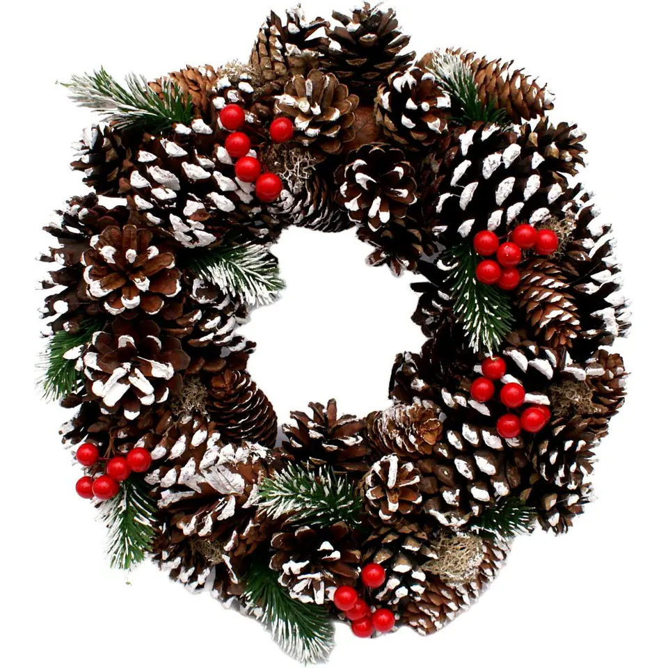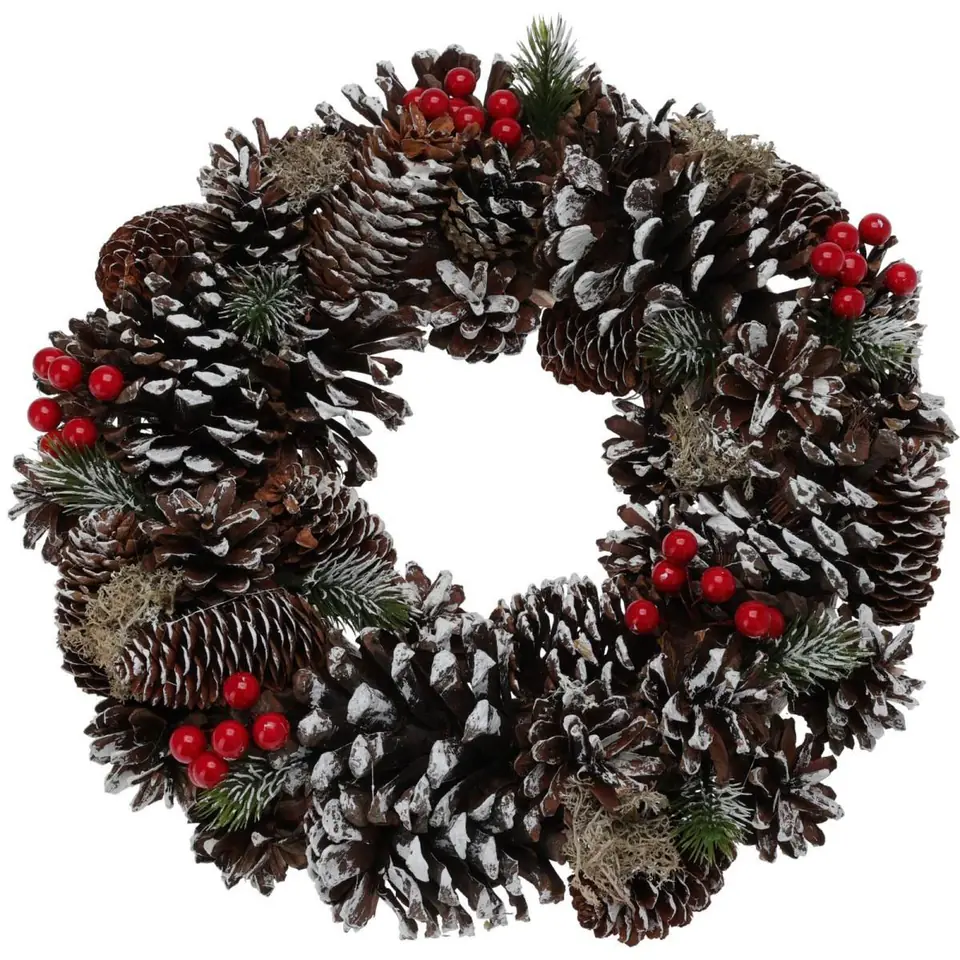 Parametry:- Wymiary zew. wianka ok: 25 cm (śr.)Wymiary wew. wianka ok.: 3 cm (śr.)Materiał: tworzywo sztuczneKolor: brązowy, zielony, czerwonyWaga netto ok.: 0,310 kgWaga brutto ok.: 0,410 kgWymiary produktu w opakowaniu (kartonik): 26,5 x 26,5 x 9 cm (szer. x gł. x wys.)Marka: Christmas Decorations