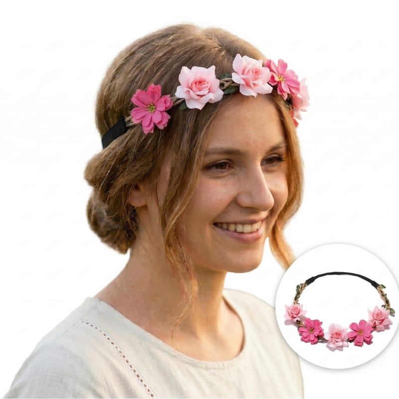 Romantyczny wianek na głowę z wysokiej jakości kwiatów sztucznych.wianek jest uniwersalny, mogą go zakładać zarówno dzieci, jak i dorosłe osoby. Idealny dodatek na wyjątkowe okazje jak i na co dzień.