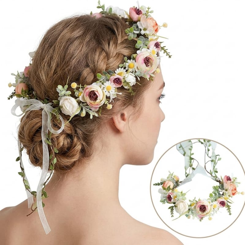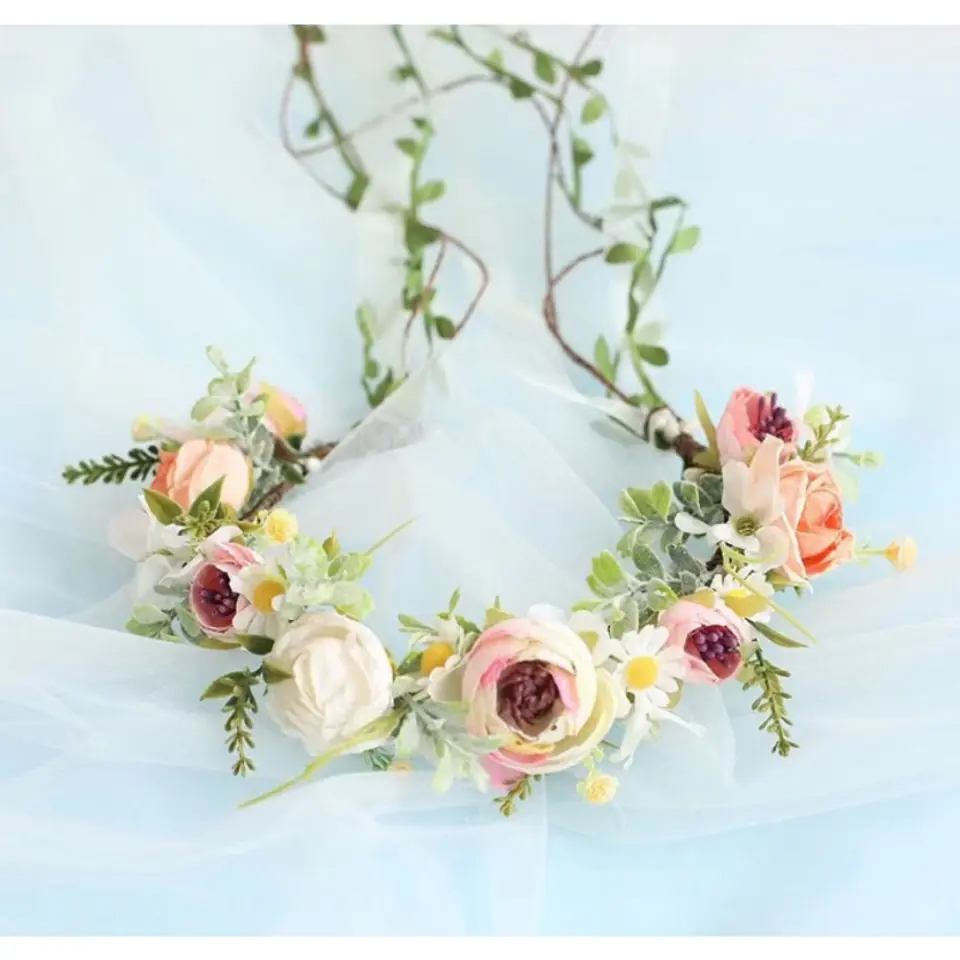 Romantyczny wianek na głowę z wysokiej jakości kwiatów sztucznych.wianek jest uniwersalny, mogą go zakładać zarówno dzieci, jak i dorosłe osoby. Idealny dodatek na wyjątkowe okazje jak i na co dzień.