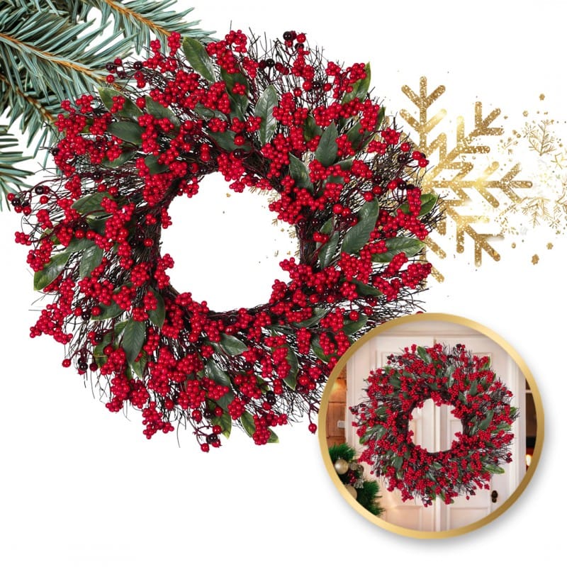 Wianek ozdobny na drzwi, stroik, sztuczna jarzębina jak żywa - średnica 55 cm WSN25