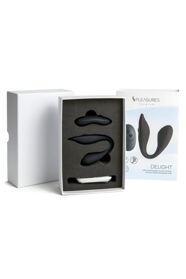 Delight to zdalnie sterowany wibrator o podwójnej stymulacji, zaprojektowany specjalnie do penetracji pochwy i jednoczesnej stymulacji łechtaczki oraz punktu G.Idealny jako zabawka dla par, w których penetracja również odgrywa ważną rolę, ponieważ podczas penetracji penis również odczuwa stymulację wewnętrznych wibracji. Mały rozmiar i bardzo dyskretny, bardzo elastyczny i dostosowujący się do wszystkich typów ciała.Wykonany w 100% z miękkiego i przyjemnego w dotyku silikonu. Posiada 3 intensywności i 7 potężnych wzorów wibracji. Posiada pojedynczy przycisk sterujący na zabawce, a dodatkowo dodaje pilot zdalnego sterowania, za pomocą którego można sterować zabawką i zwiększyć erotyczne gry. Pilot jest zasilany baterią CR2032 (w zestawie), a zabawkę można ładować za pomocą kabla USB (w zestawie). Jest to zabawka zanurzalna i bardzo łatwa do czyszczenia.Idealna zabawka, która oferuje szeroki zakres możliwości do zabawy solo lub w towarzystwie. Zaleca się stosowanie lubrykantu na bazie wody, aby wzmocnić doznania i uczynić je przyjemniejszymi.Główne cechy:Wibrator o podwójnej stymulacji.Penetruje pochwę i stymuluje łechtaczkę.Idealny dla par.Penis jest również stymulowany przez wibracje.Mały rozmiar i dyskretny.Elastyczny.Wykonany w 100% z silikonu.3 intensywności i 7 wzorów.Pilot zdalnego sterowania, który kontroluje zabawkę.Możliwość sterowania za pomocą zabawki i pilota.Wszechstronność.Pilot wymaga jednej baterii CR2032 (w zestawie).Zabawkę można ładować za pomocą kabla USB (w zestawie).Wodoodporny.Łatwa do czyszczenia.Zalecany lubrykant na bazie wody.