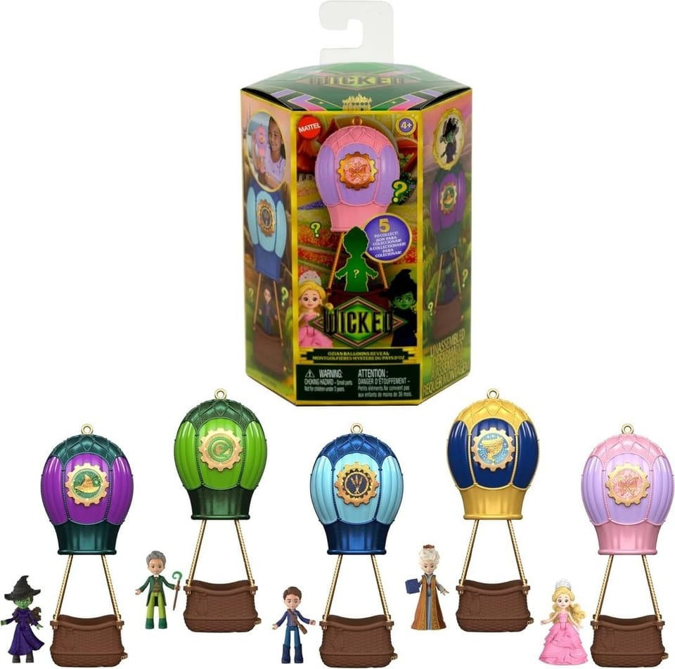 Zestaw zabawek Wicked Ozian Balloons firmy Mattel Universal Pictures z małą lalką-niespodzianką, balonem na ogrzane powietrze i akcesoriami.