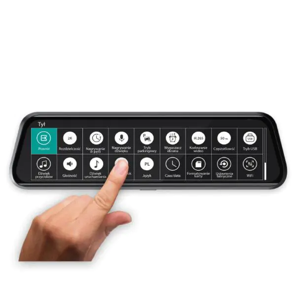 Komfort użytkowania i łatwość obsługi zapewni aż 9.66 calowy ekran. Ergonomiczny ekran dobrze reaguje na dotyk, zapewnia precyzję i swobodne operowanie funkcjami interfejsu. Najnowsza technologia sprawiła, że obsługa rejestratora jazdy za pomocą ekranu dotykowego jest czystą przyjemnością. Lusterko ma istotny wpływ na bezpieczeństwo dlatego zastosowaliśmy krótki czas wygaszacza ekranu (5 lub 15 sekund).